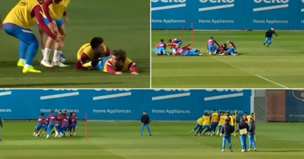 El Barça entrenó con normalidad este viernes pensando en dicho encuentro, pero lo curioso fue el ejercicio que se inventó el entrenador catalán antes de dar por iniciado la sesión.