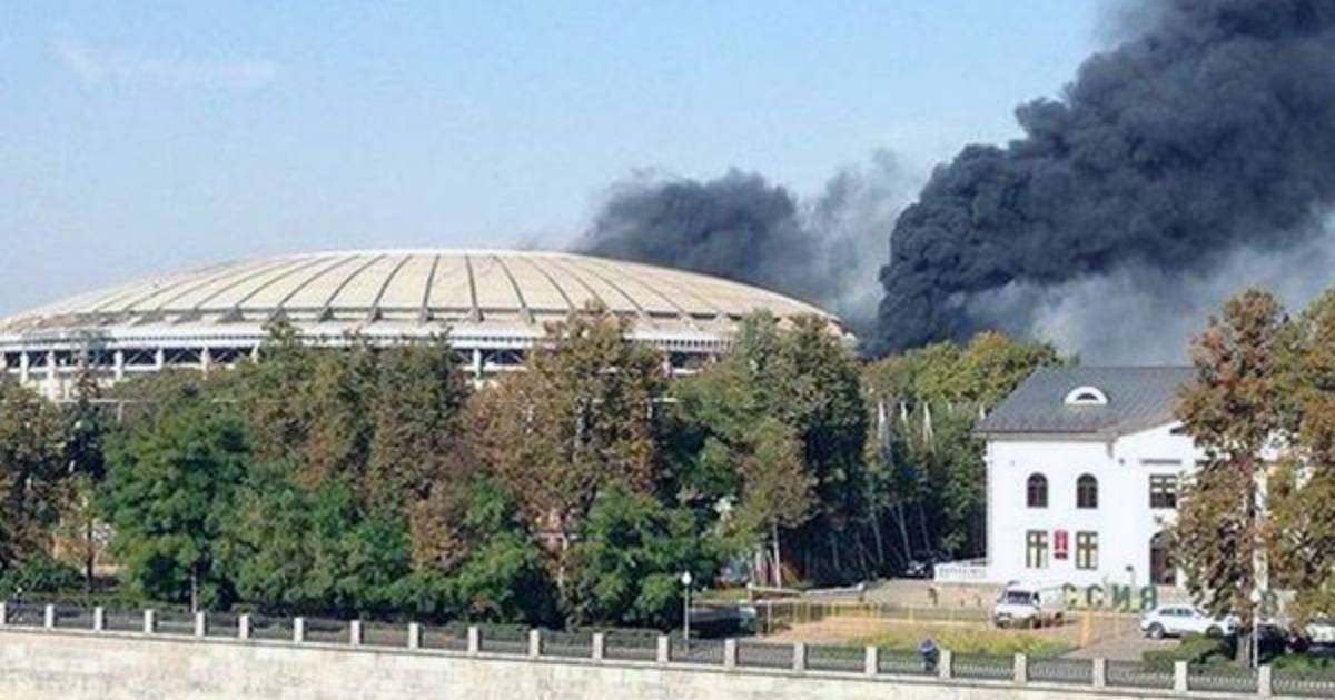 El estadio despidió grandes cantidad de humo sobre la ciudad de Moscú, pero