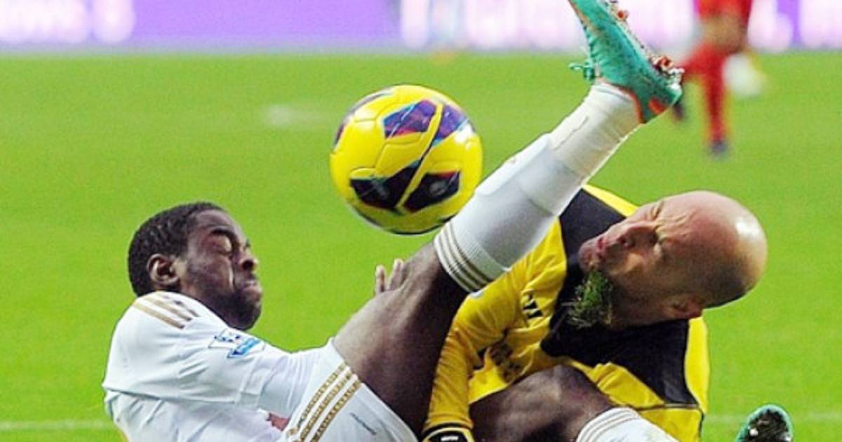 El portero español Pepe Reina sufrió este domingo un fuerte golpe en la cara después de un choque con el jugador del Swansea Dyer que lo dejó noqueado por un momento.