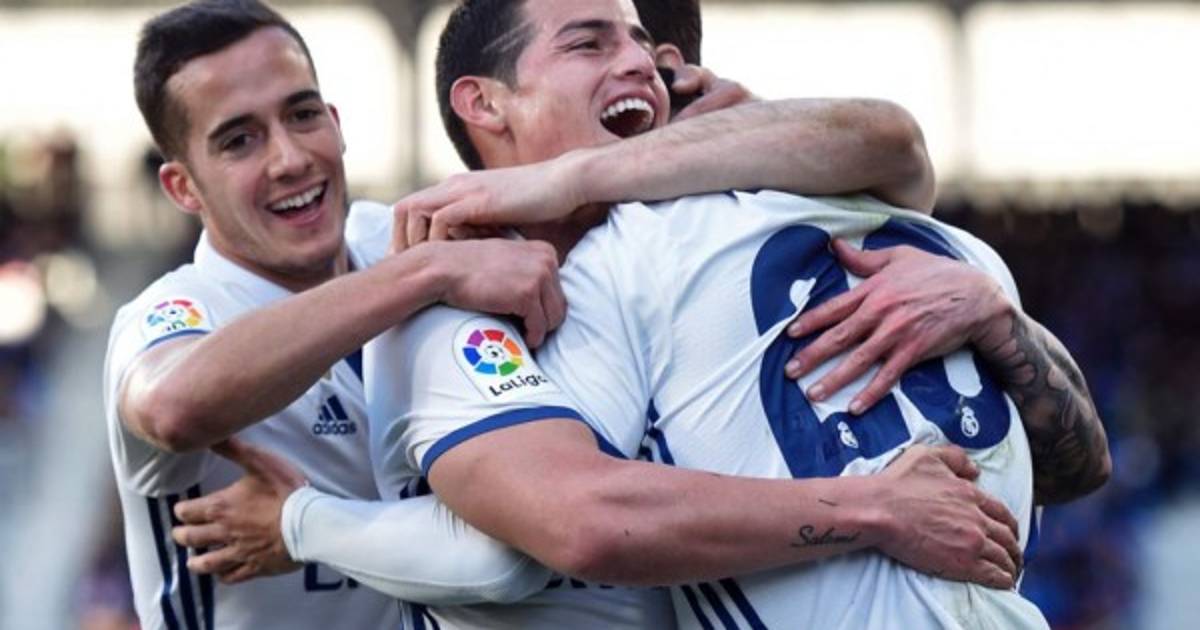 En la segunda parte, James soltó un disparo al palo y el rebote lo recogió Marco Asensio para hacer el 4-0 (60), antes de que Rubén Peña marcara el gol del honor armero (71).