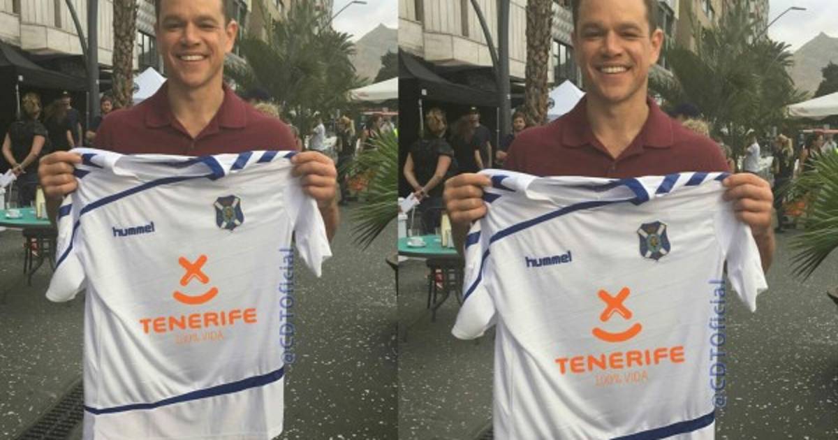 Matt Damon, que ha estado en Tenerife por varias semanas rodando la quinta entrega de la saga 'Bourne', posó con la camisa del CD Tenerife.