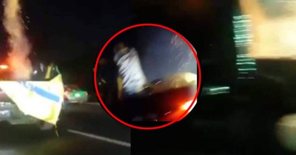 Un video que circula en las redes sociales nos dejan ver cómo varios aficionados de los felinos celebraban con juegos pirotécnicos en la paila de un carro.
