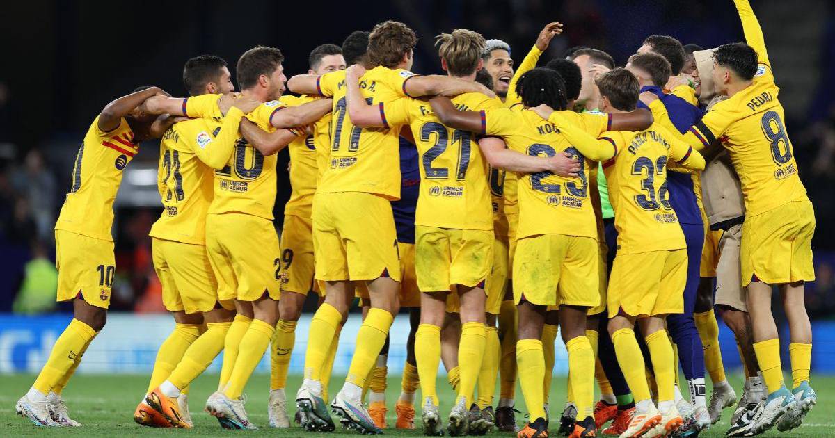 El Barça levantó su 27º título de Liga gracias al doblete del artillero polaco (11, 40) y los tantos de Alejandro Balde (20) y Jules Koundé (53), que también dejaron al Espanyol hundido en la zona de descenso a Segunda División, sin que le sirviera los goles de Javier Puado (73) y Joselu (90+2).