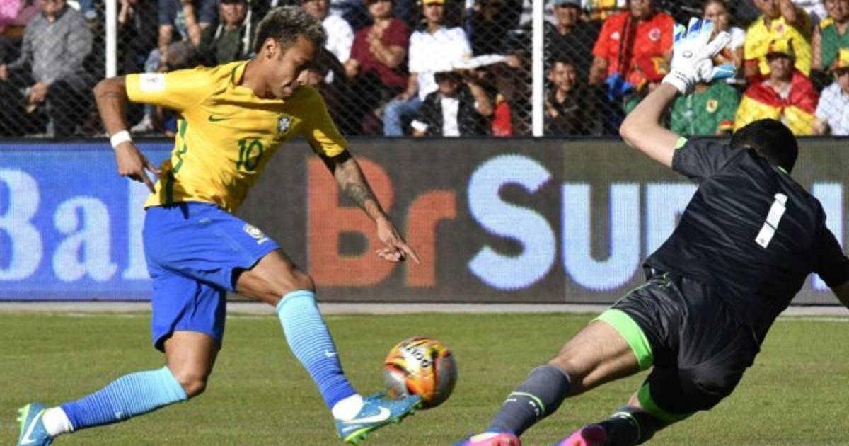 La visita dejó que Bolivia avance hasta tres cuartos de cancha, pero no descuidó el contragolpe. A los 24 minutos Neymar encontró espacio a las espaldas de los volantes bolivianos y lanzó un disparo rasante y el portero Carlos Lampe mandó a tiro de esquina en lucida acción.