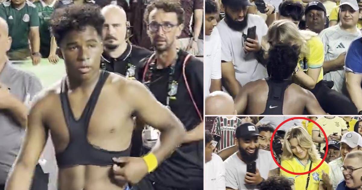 Una vez finalizado el compromiso con la ajustada victoria, Endrick buscó a su pareja que se encontraba en las tribunas animándolo. El futbolista primero recibió un premio, luego se dirigió a las gradas para besar a su enamorada y le regaló la playera.