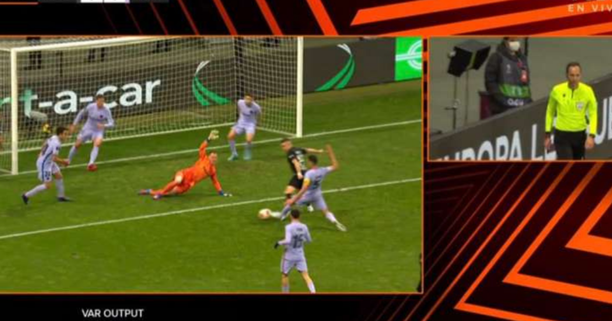 “Penalti sí. El protocolo es el mismo en España y Europa. En la Liga esta jugada es penalti. Como ya hay un contacto que puede ser penalti, aquí ya no le avisan. Hay conversación si no ha contacto, pero en este jugada hay contacto. Es la misma jugada del Real Sociedad-Espanyol y se pitó penalti. Para mí, no era penalti porque no era suficiente el contacto”.