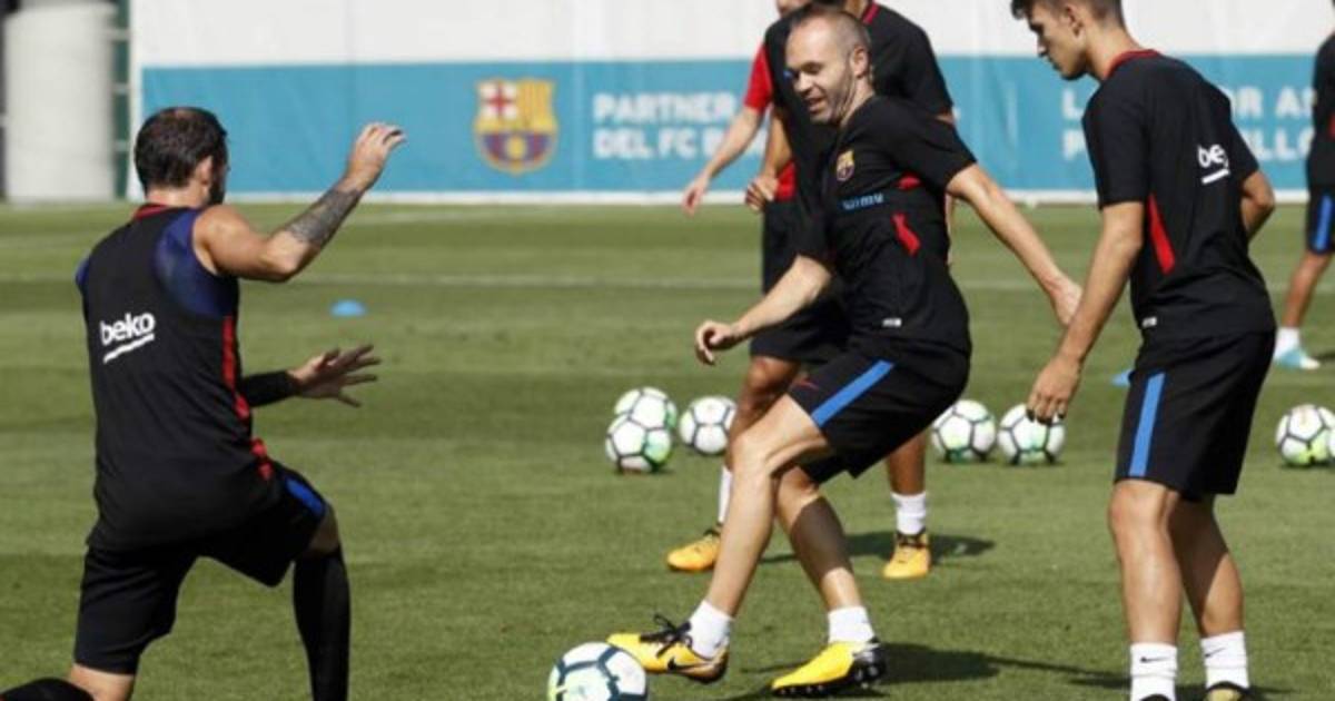 FC Barcelona, en una sesión hoy en la Ciudad Deportiva en la que los titulares de anoche en el partido contra el Betis en el