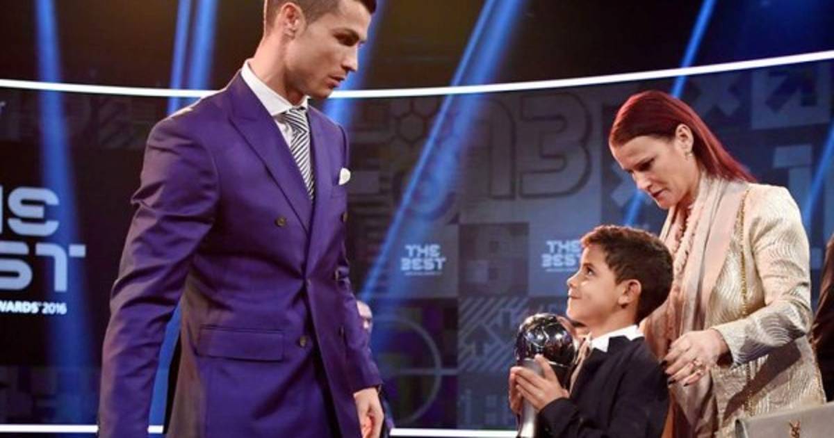 Cristiano recibió el lunes de parte de FIFA el premio The Best por encima de Messi y Griezmann y al final de la ceremonia, el hijo del futbolista disfrutó posando con el bonito trofeo.