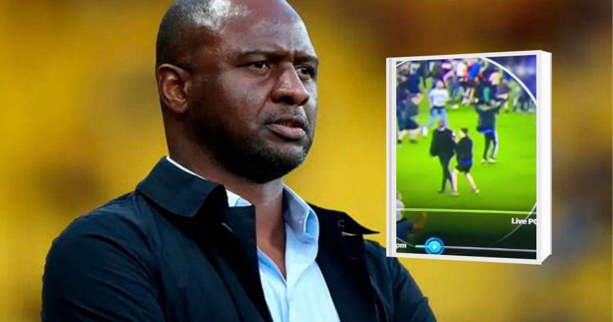 Patrick Vieira, entrenador del Crystal Palace, derribó este jueves con una patada a un aficionado del Everton que le había provocado, después de la invasión de campo que siguió a la victoria de los ‘Toffees’, que les asegura la permanencia en Premier League.