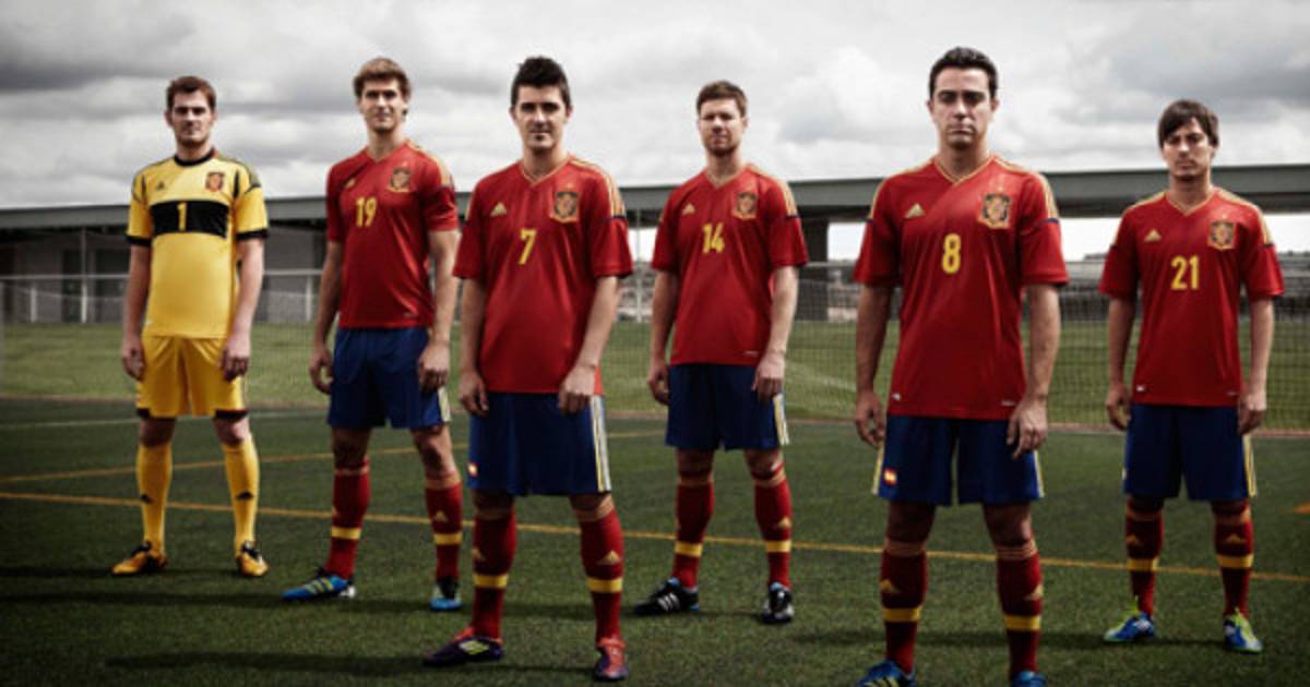 La nueva camiseta de España, que Adidas sacará a la venta en Navidad, recupera el color rojo con un pequeño detalle en azul marino en la caída de las mangas. Los colores de la bandera española se forman con las bandas de los hombros y también con el cuello, que cambia y pasa a ser de pico. La estrella de Campeones del Mundo luce encima del escudo de la Rfef.