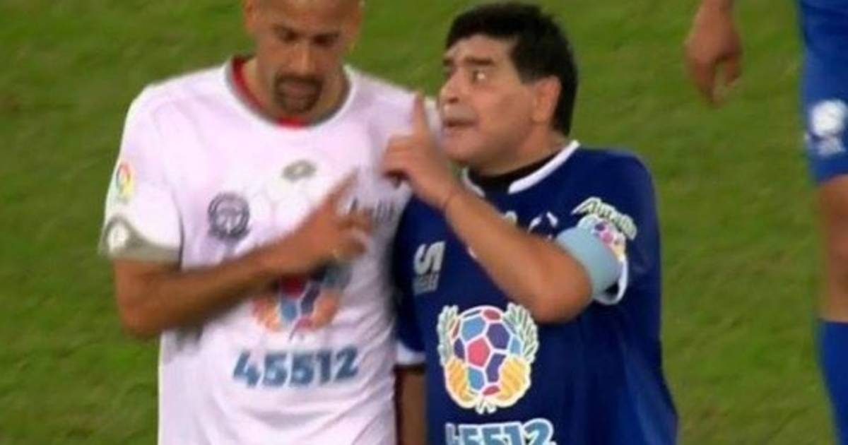 El 'Pelusa' se molestó el gesto de la 'Brujita' y comenzaron a discutir cuando finalizó el primer tiempo del juego por la paz que se disputó en Roma, Italia.