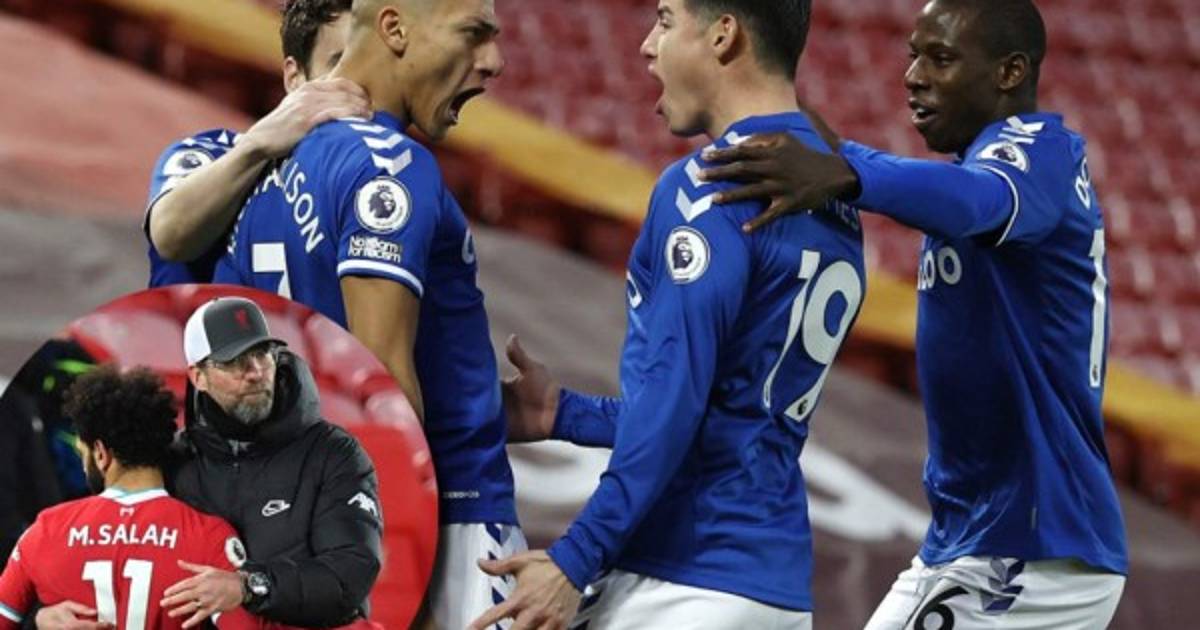 El brasileño Richarlison (minuto 3), asistido por el colombiano James Rodríguez, y el islandés Gylfi Sigurdsson (83), transformando un penal, consiguieron los goles de la victoria del Everton, que llevaba 22 años sin ganar un 'Derbi del Mersey' en el templo de su vecino.
