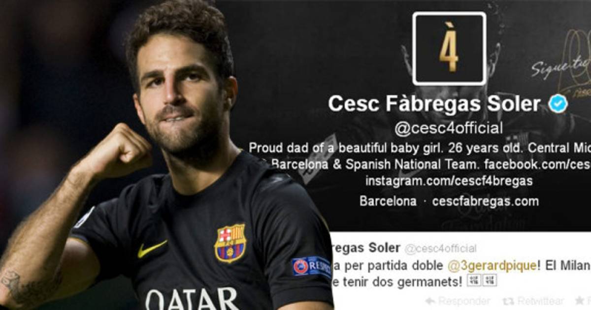 Cesc Fábregas colgó un mensaje en su cuenta de Twitter en el que felicita a su compañero, Gerard Piqué, por sus dos hijos que asegura está esperando Shakira, esposa del defensor.
