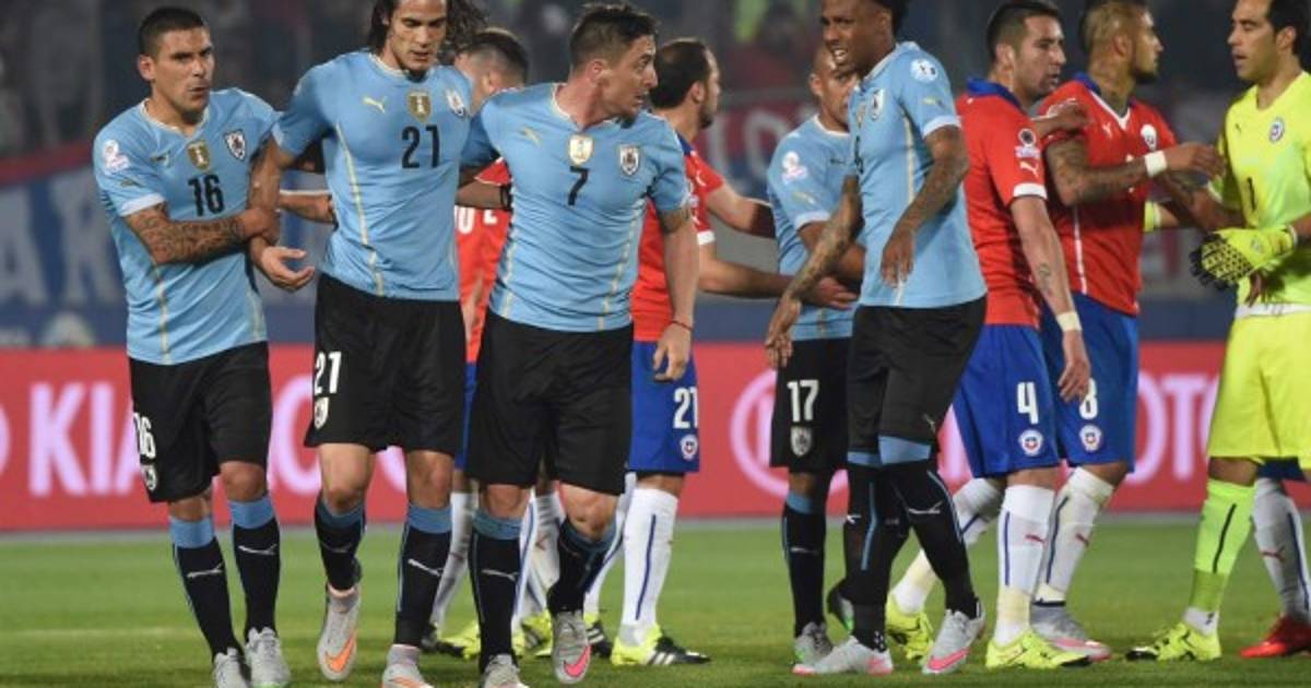 'La Federación de Fútbol de Chile denunció ante la Unidad Disciplinaria de la Conmebol a los siguientes jugadores de la selección uruguaya: Edinson Cavani, Diego Godín, Fernando Muslera, José María Giménez, Jorge Fucile, Álvaro González y Christian Stuani'.