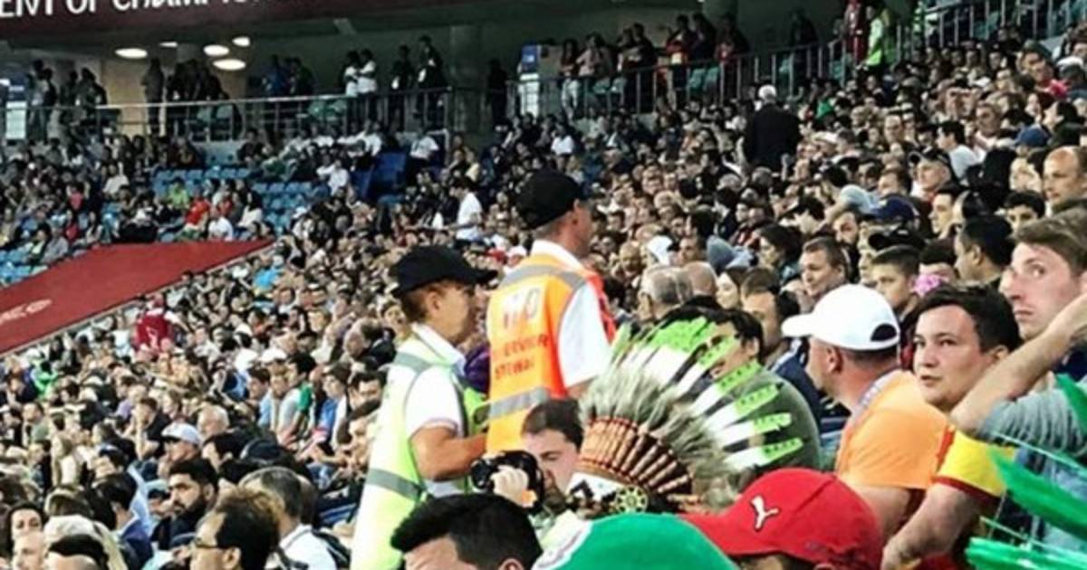 Según reportó la cadena ESPN, FIFA envió muchos agentes infiltrados de civil en las graderías que estaban vigilando a los aficionados, dos de ellos decidieron retar al máximo organismo y fueron sacados del estadio y no podrán ingresar a ninguna otra instalación de Rusia.