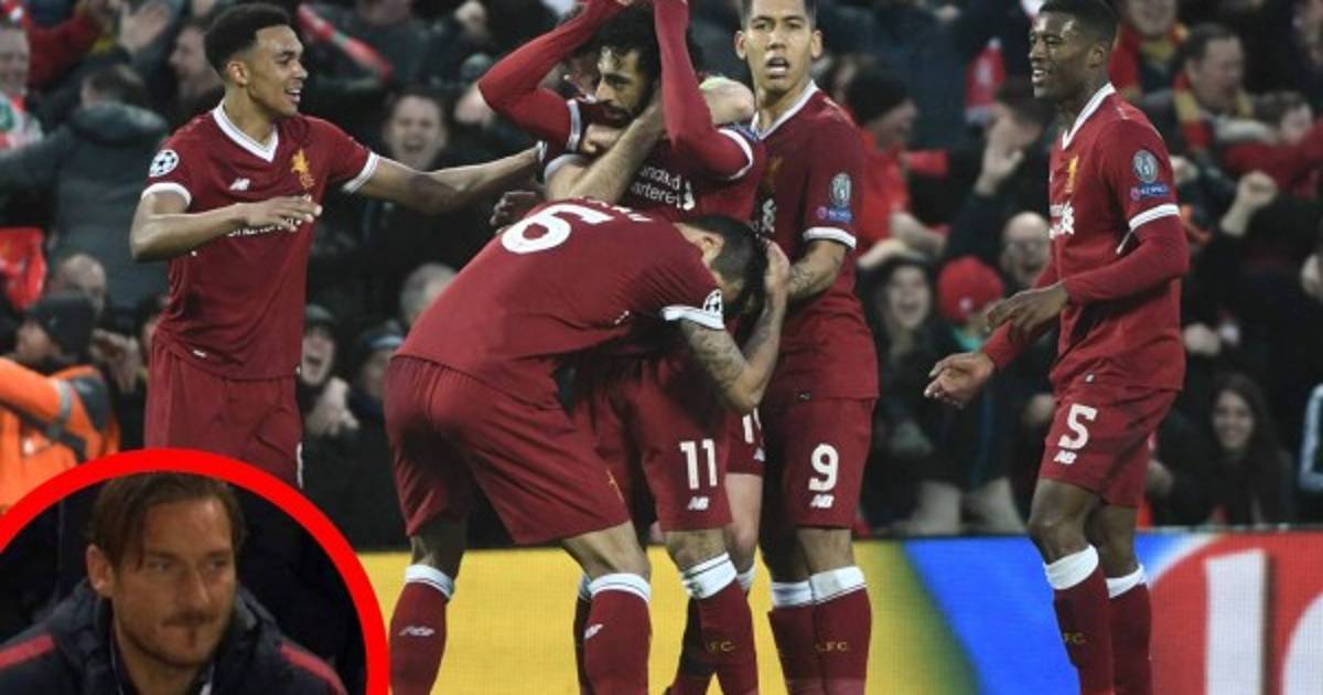 Francesco Totti mientras veía desde las graderías del Anfield cómo la