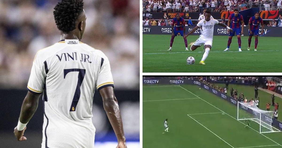 Vinicius Jr tomó el balón, pero el ‘7’ perdonó desde los 12 pasos contra Ter Stegen. El tiro fue muy elevado y terminó estrellando el balón en el larguero.
