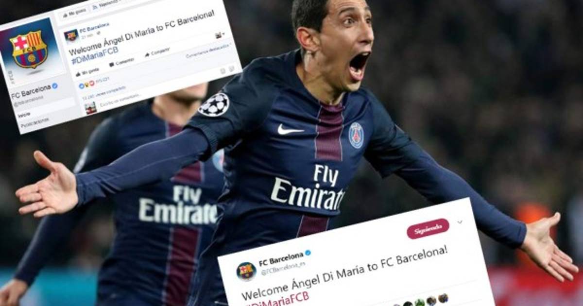 Con bombos y platillos, los aficionados compartían y comentaban el fichaje del argentino Ángel Di María en Facebook, pero el hecho quedó al descubierto cuando se informó por el Twitter del cuadro catalán que Di María era el nuevo fichaje del cuadro blaugrana.