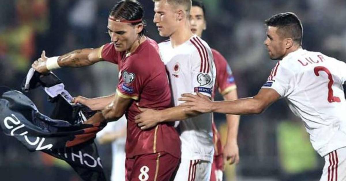 Los futbolistas de ambos equipos se enzarzaron cuando un jugador serbio alcanzó el drone y arrancó la bandera albanesa.