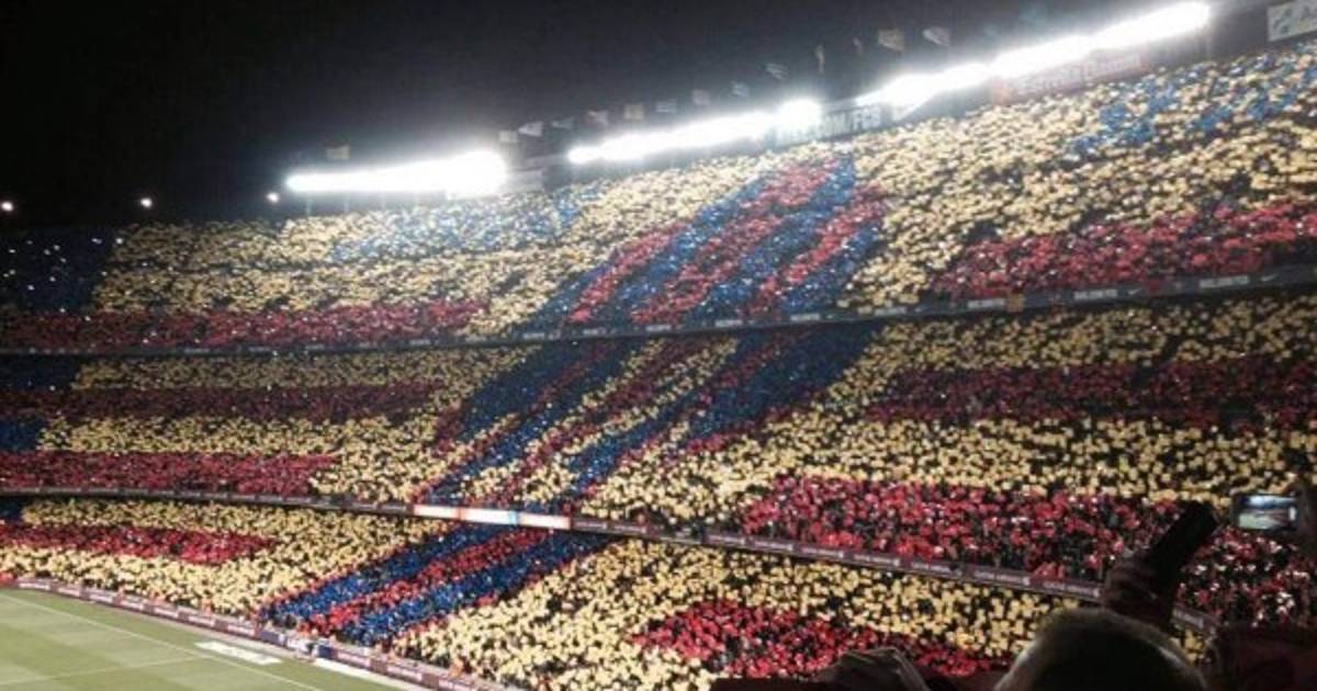 El mosaico que se dio vuelta al estadio barcelonista con 98.000 cartulinas que fueron levantadas por los aficionados presentes en el estadio, con los colores azul, grana y amarillo, en el momento en que los jugadores salieron al terreno de juego.
