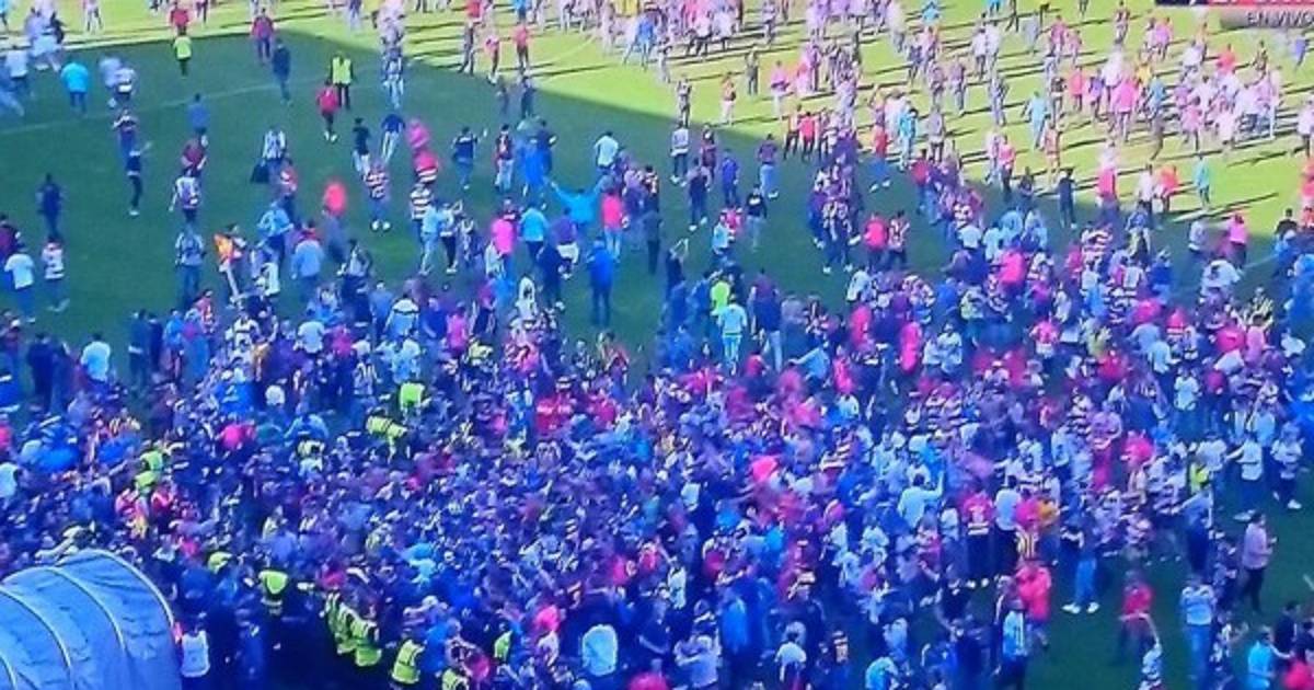 Pero la gente presente en el coloso del Nuevo Los Cármenes comenzó a invadir al terreno de juego y se produjo una invasión de campo que frustró la celebración de los azulgranas, que se vieron obligados a meterse en el túnel de vestuarios ante la locura generada sobre el terreno de juego.