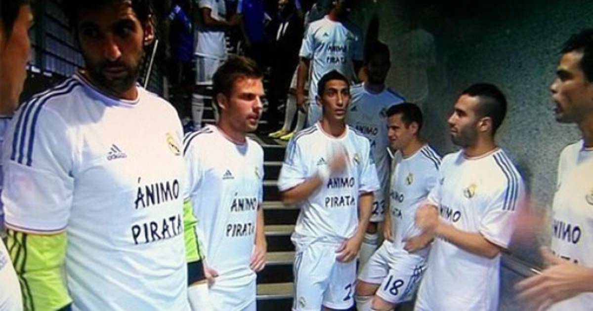 Los jugadores del Real Madrid se acordaron este domingo de su excompañero Esteban Granero, lesionado de gravedad y actualmente en las filas de la Real Sociedad, al saltar al césped del Bernabéu para disputar el derbi frente al Getafe con unas camisetas en las que se leía 'Ánimo, pirata'.