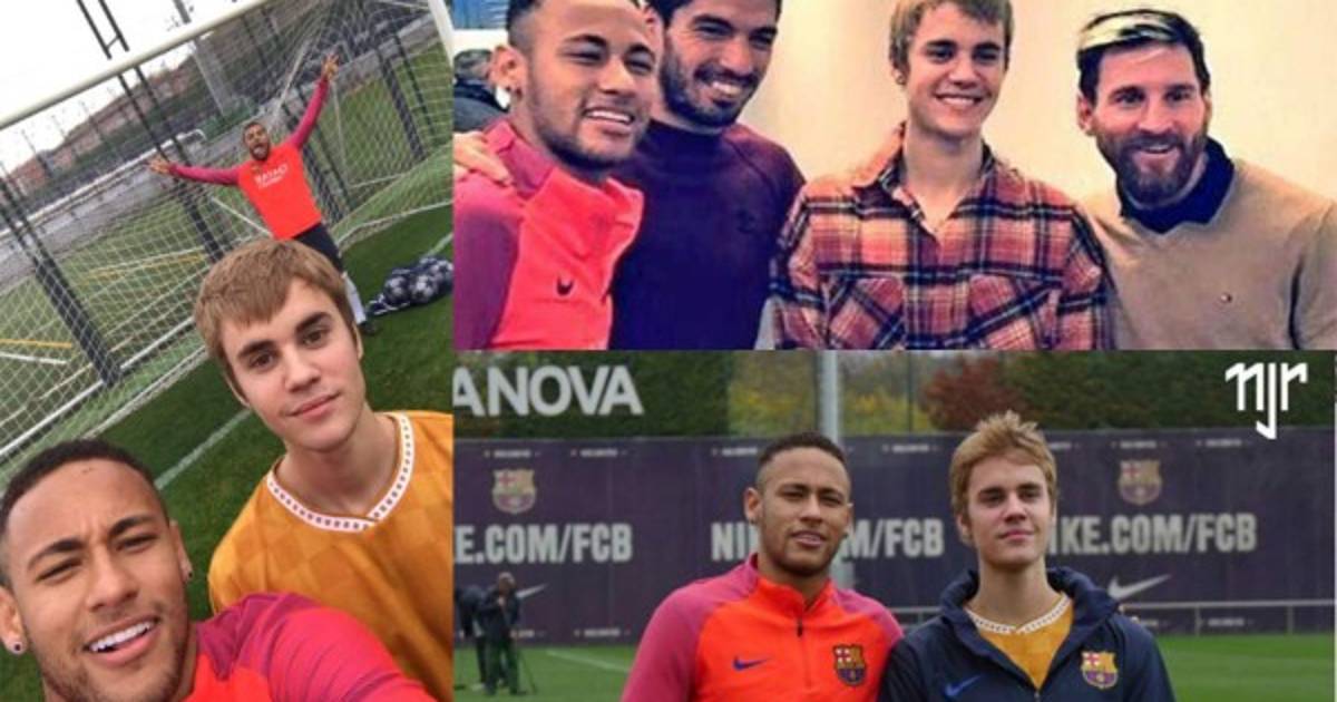 El cantante canadiense Justin Bieber, que actúa mañana en Barcelona, ha presenciado esta mañana el entrenamiento del FC Barcelona y se ha fotografiado con las estrellas del equipo azulgrana.