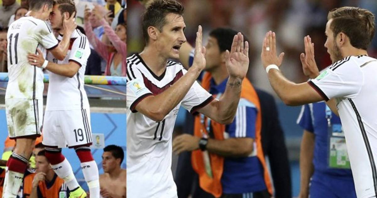 El delantero alemán Miroslav Klose aseguró que le había dicho a Mario Götze antes de que entrara al campo que esta vez era a él al que le tocaba marcar el gol en la final contra Argentina, lo que a la postre ocurrió.
