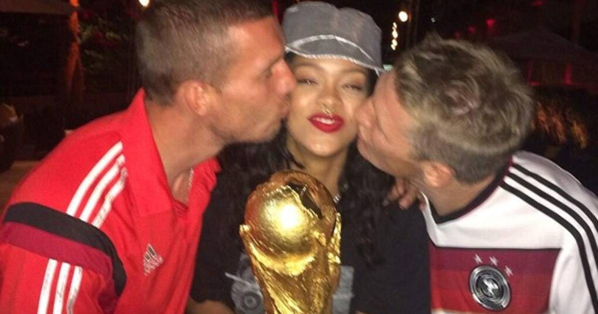 Los jugadores de Alemania compartieron con Rihanna la Copa del Mundo y obviamente las fotos no faltaron. La cantante posó con Lukas Podolski, Bastian Schweinsteiger, Mario Götze (quien marcó el gol del triunfo) y Miroslav Klose.