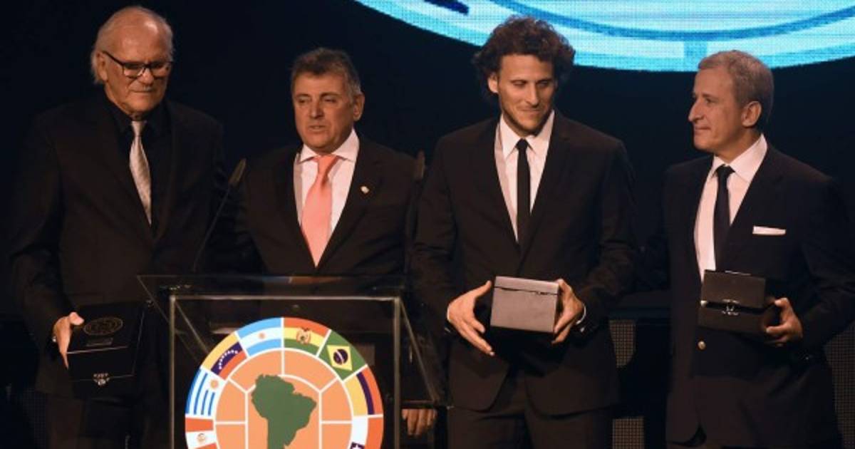 Diego y Pablo Forlán recibieron la réplica de la Copa América y recordaron a Juan Carlos Corazzo durante el sorteo de la Copa Libertadores en la ciudad paraguaya de Luque, a las afueras de Asunción.