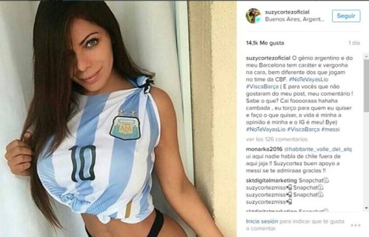 'El genio argentino y del Barcelona tiene carácter y vergüenza en la cara. Muy diferente a los que juegan en el equipo de CBF (Confederación Brasileña de Fútbol)', posteó la modelo brasileña.