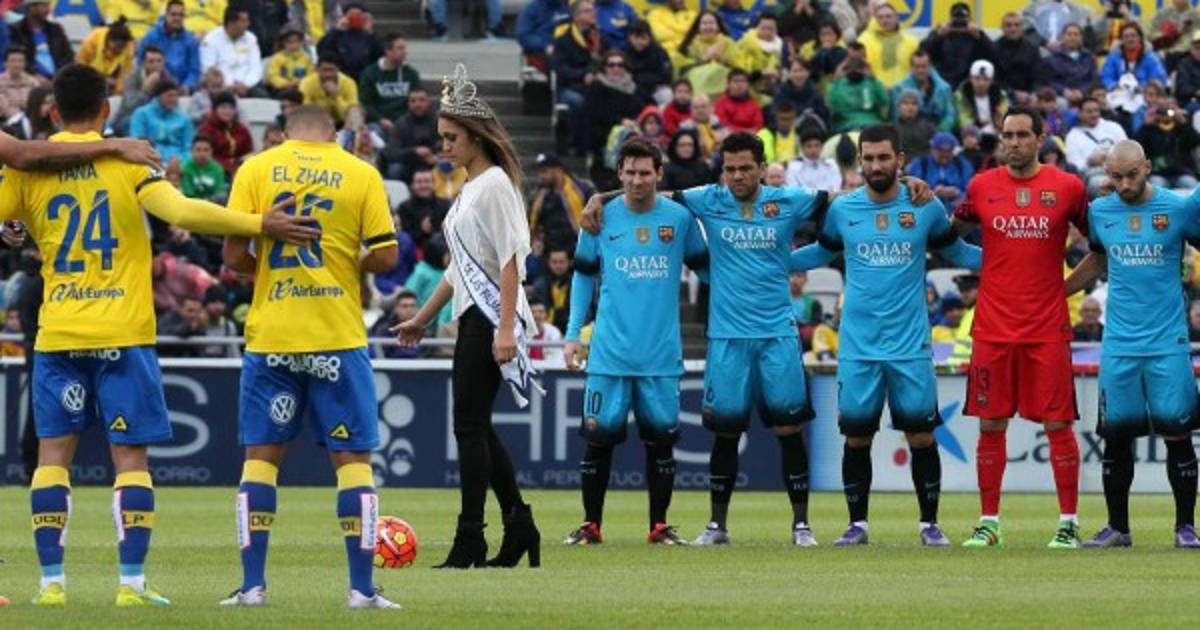 Los jugadores del Barcelona la pasaron muy bien antes del choque, pues Paula Miranda, reina del Carnaval 2016 de Las Palmas realizó el saque de honor del partido que disputó el Barcelona en la isla este sábado.