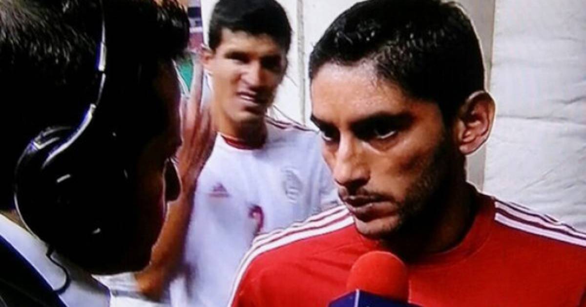 Mientras su compañero, el portero Jesús Corona, era entrevistado, el jugador del América de México, señaló a las cámaras con el dedo medio de la mano derecha.
