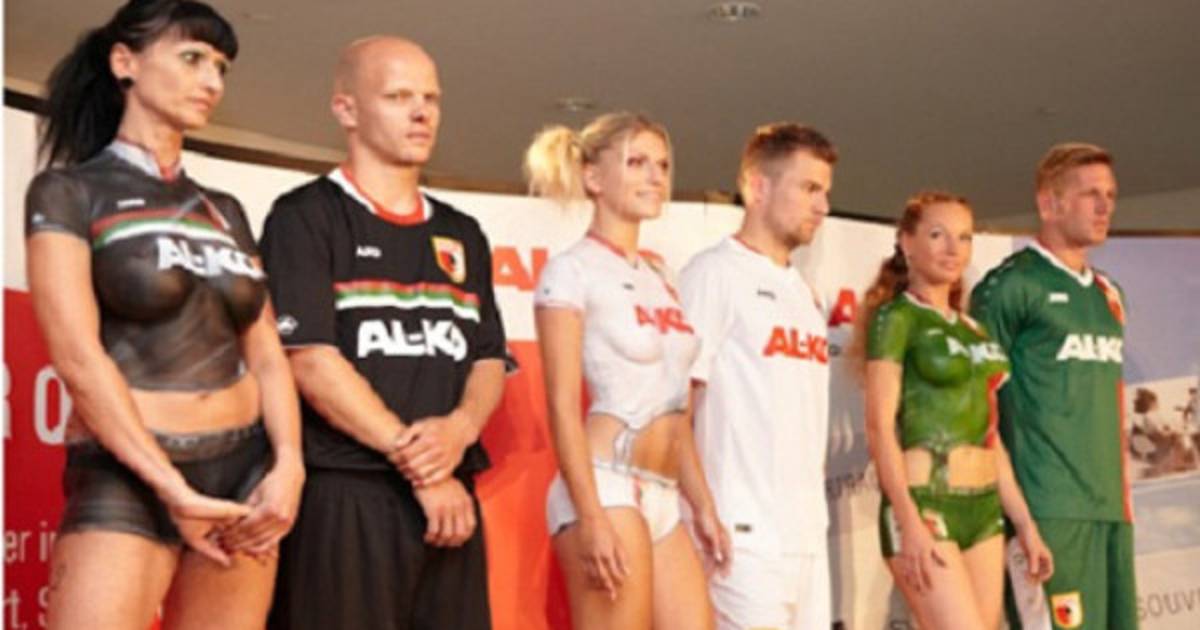 El equipo alemán FC Augsburg no tuvo mejor idea que presentar su nueva camiseta para la temporada 2013-14 con modelos cubiertas por pintura corporal simulando tener puesta la nueva indumentaria.