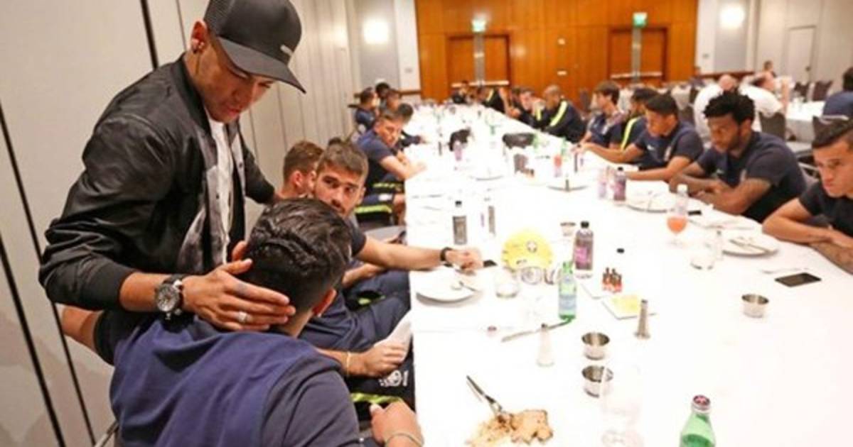 De acuerdo con la nota, tras saludar a todos los jugadores, especialmente al zaguero Miranda, al que una lesión lo puso en duda para la Copa América, Neymar se sentó en la mesa en el lugar en que acostumbra hacerlo cuando está concentrado con Brasil y junto a su ahora excompañero en el Barcelona Daniel Alves.