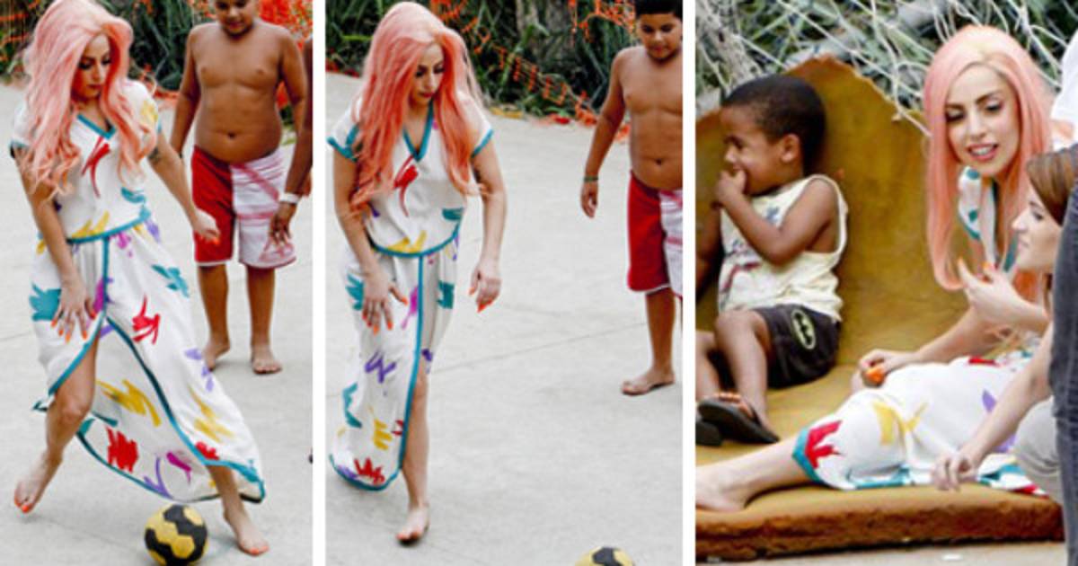 Ahí jugó futbol descalza, entonó su tema Born this way y conoció el proyecto social Criança Esperança (Niño Esperanza), que desarrolla la televisión Globo junto con la Unesco.