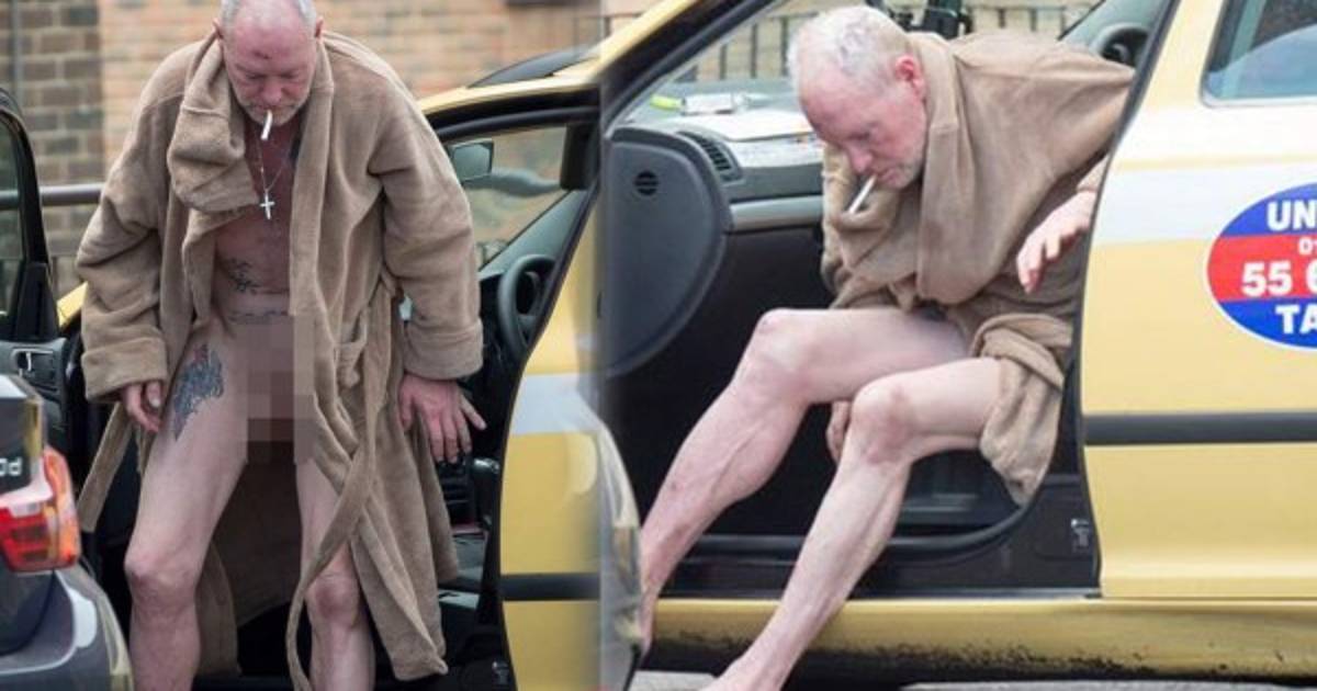 Paul estaba solamente con una bata y sin ropa interior, momento en que el diario The Sun lo captó cuando se bajaba del automóvil.