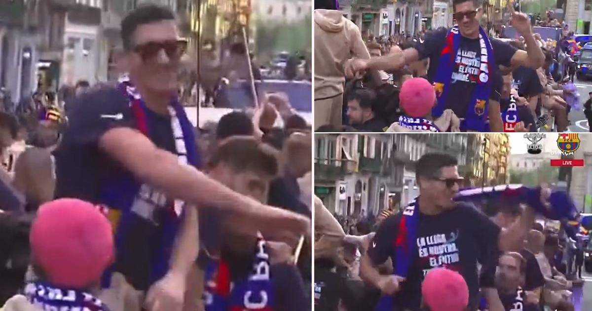 Luciendo unas gafas de sol y una bufanda del Barça, Robert Lewandowski, máximo goleador del certamen, saludaba con una gran sonrisa, mientras a su lado Ronald Araújo, con una bandera uruguaya sobre los hombros, saltaba y saludaba a los hinchas.