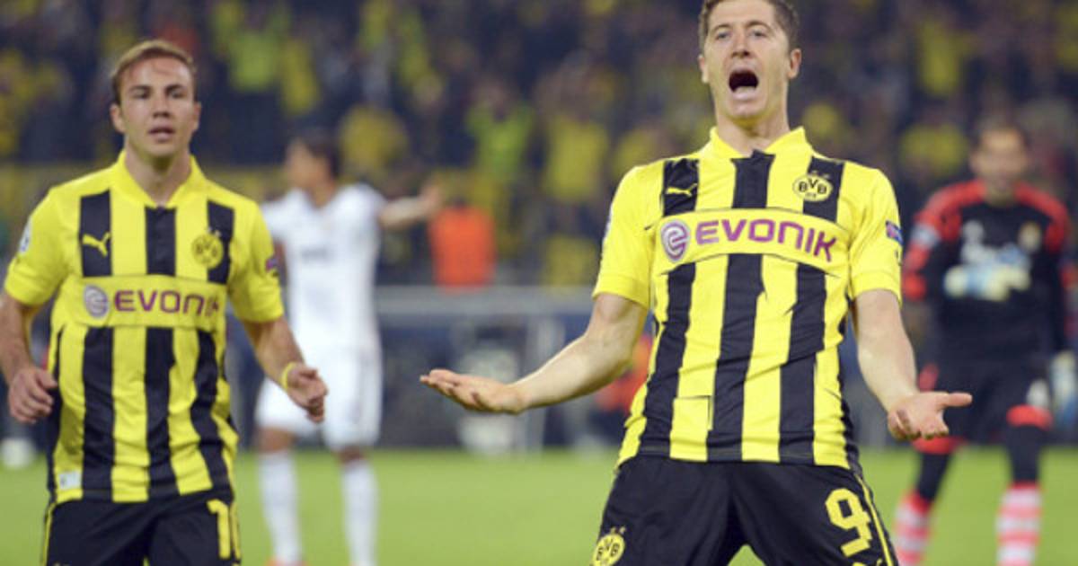 En el minuto 7, Diego López reaccionó con una buena parada ante un disparo cruzado abajo de Marco Reus, pero un minuto después nada pudo hacer cuando el polaco Robert Lewandowski definió desde corta distancia a centro de Mario Götze, tras deshacerse con facilidad de la marca de Pepe, que tuvo una noche negra.