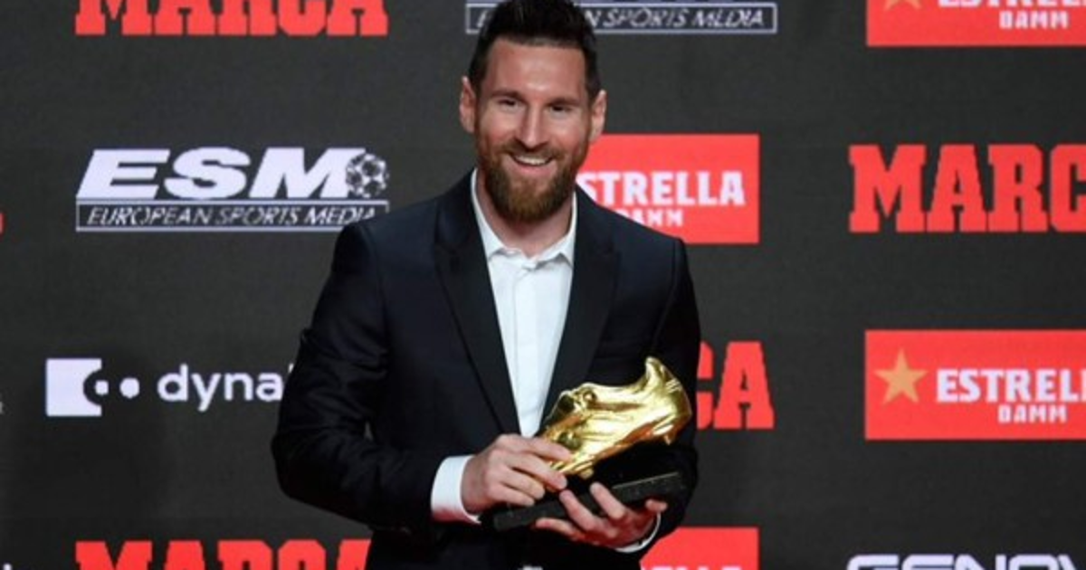 Thiago y Mateo, subieron al escenario para entregarle a su padre el reconocimiento al mejor goleador de la temporada pasada, Messi los abrazó y besó luego de obtener la Bota de Oro.