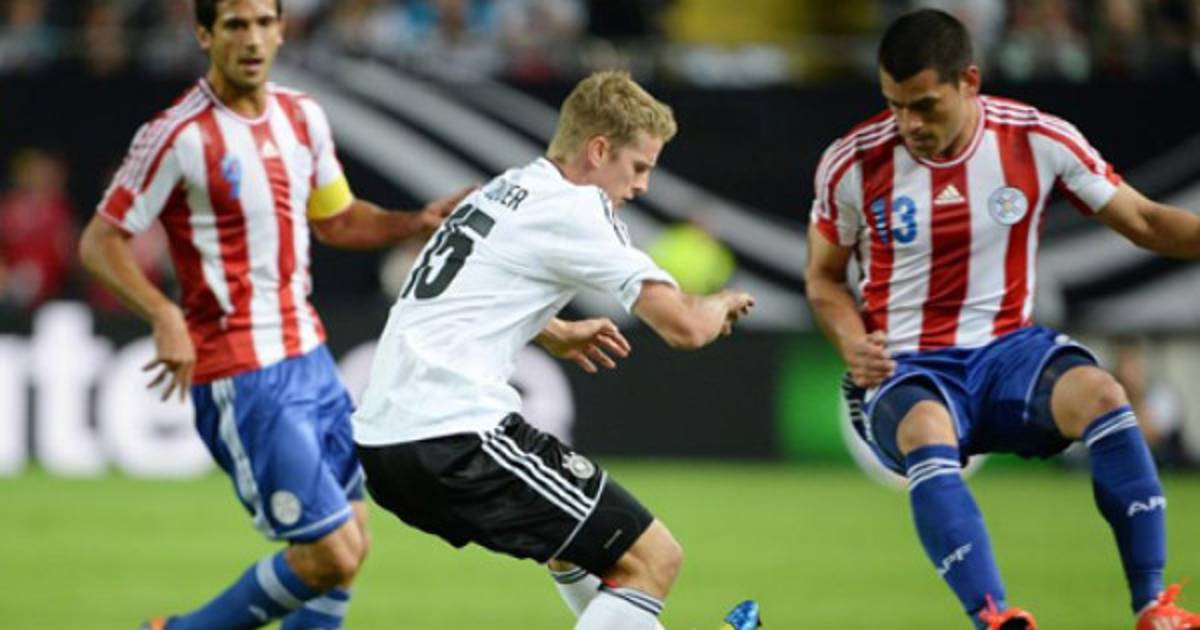 En un gran primer tiempo, Paraguay anotó tres goles, obras de Núñez (9), Pittoni (13) y Samudio (45+1), aunque los europeos acabaron empatando con los tantos de Gündogan (18), Müller (31) y Bender (75).