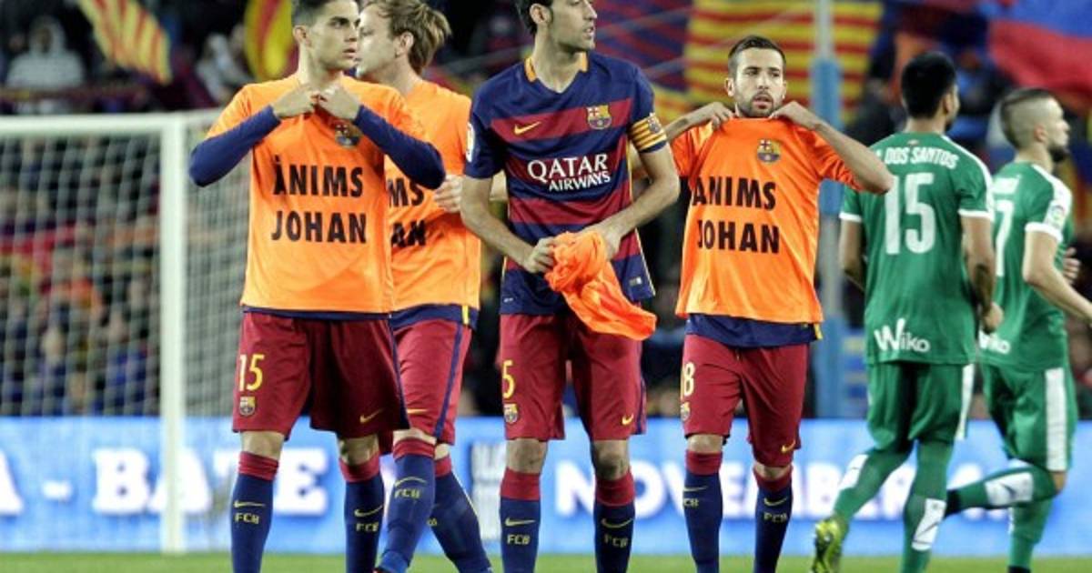 Los jugadores del Barcelona muestran su apoyo a Johan Cruyff
