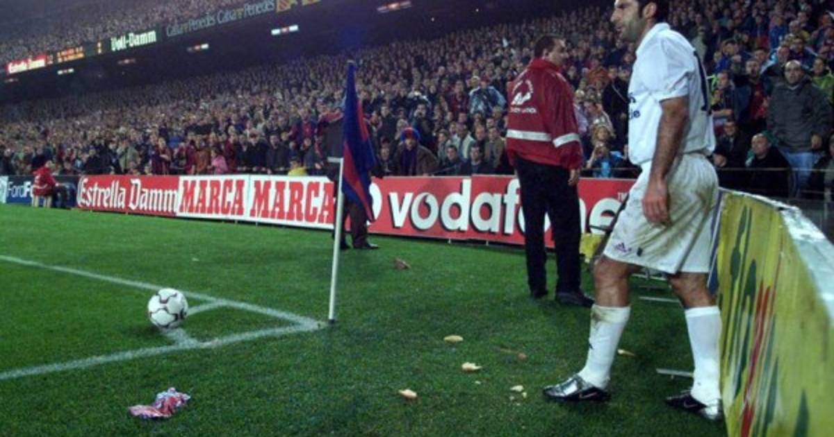 Luis Figo no se dio cuenta en pleno partido de todo lo que le lanzaron realmente hasta que lo miró en los diarios.