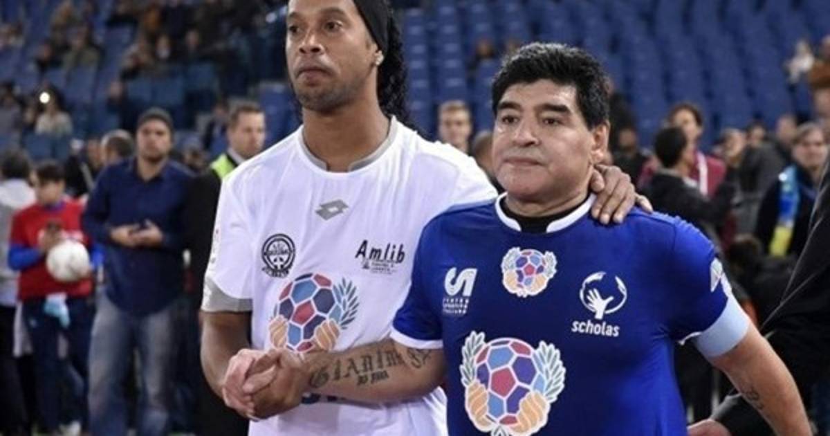 Maradona y Totti jugaron en el mismo equipo y se enfrentaron a otra pareja de delanteros de lujo, formada por Ronaldinho y Kanouté.