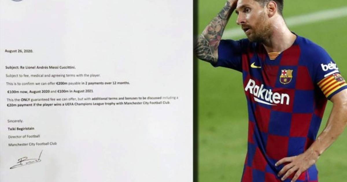 La supuesta oferta se volvió viral en redes sociales, pero Mundo Deportivo aseguró que el documento es falso, ya que el City no está a disposición de afrontar una operación de tal magnitud en este mercado de verano.Aseguran que Messi ''no es garantía de éxito'' en la Premier League