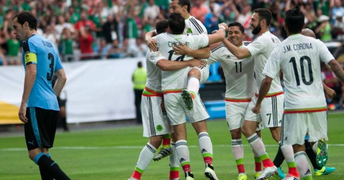 Álvaro Pereira, en contra a los 4 minutos, Rafael Márquez (85) y Héctor Herrera (90+2) marcaron los goles del seleccionado azteca, mientras que el empate transitorio lo marcó el capitán uruguayo Diego Godín (74).