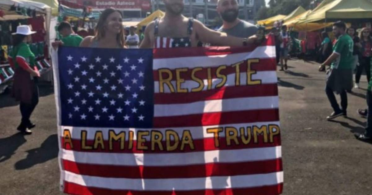 Un aficionado mexicano mostrando mensajes fuertes en contra del presidente de los Estados Unidos, Donald Trump.