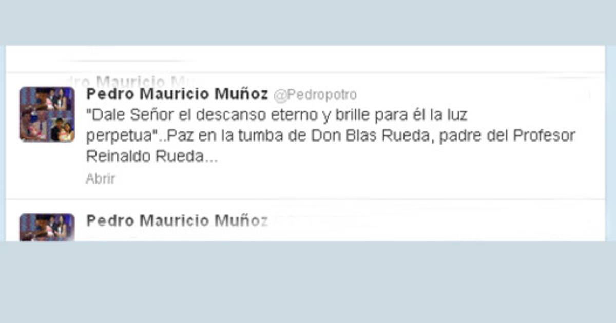 La información se ha dado a conocer por parte del coordinador de la Federación Ecuatoriana de Fútbol, Pedro Muñoz, que en su cuenta de twitter colocó: 'Dale Señor el descanso eterno y brille para él la luz perpetua'..Paz en la tumba de Don Blas Rueda, padre del Profesor Reinaldo Rueda...'.