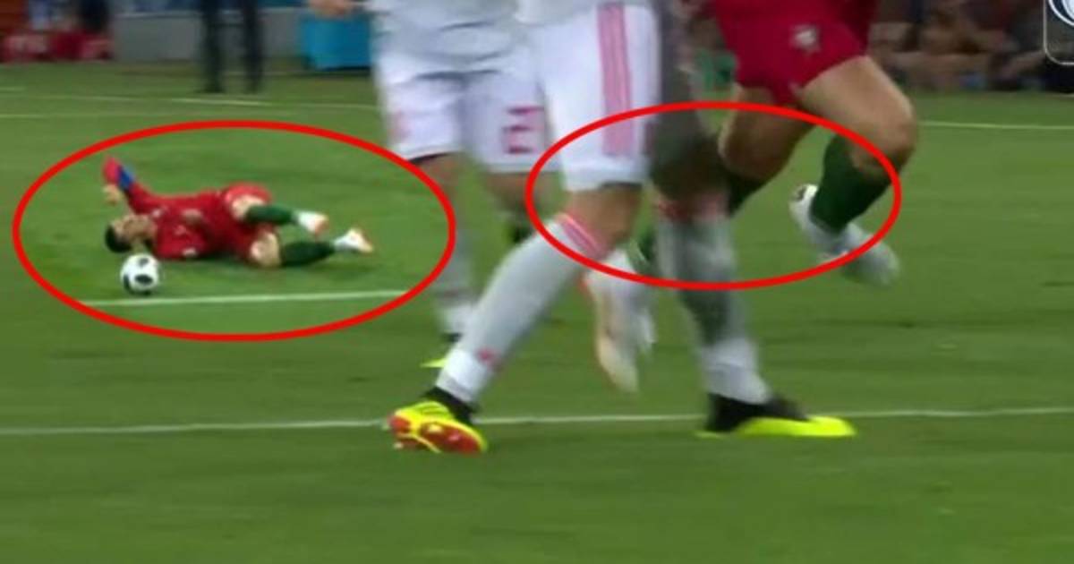 Apenas en el minuto 3' del primer tiempo del juego, Cristiano Ronaldo fue víctima de una falta dentro del área producto de roce de Nacho.