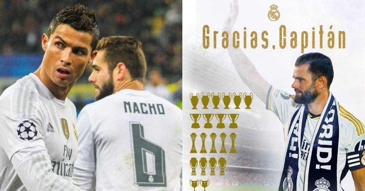 “Eres uno de los héroes de la gran historia del Real Madrid ¡Siéntete orgulloso de lo que lograste, Nacho”, escribió CR7 al defensor.